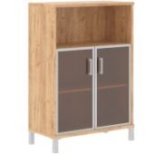 Компактный и высокий комбинированный шкаф BORN для офисного или домашнего использования. Размеры - 475х2054х450 мм, тип – левосторонний, цвет – Орех Даллас. Оснащен 5 просторными полочками, 2 нижние закрываются дверцей из ЛДСП, 2 верхние – стеклянной дверцей с металлической рамкой, а посередине одна открытая полочка. На дверцах установлены стильные металлические ручки. Шкаф имеет опоры увеличенной длины. Конструкция оснащена прочными силовыми креплениями – эксцентриковыми стяжками. Все торцы основных элементов шкафа надежно защищены кромкой ПВХ – 2 мм. Регулируемые по высоте опоры обеспечат шкафу устойчивость на неровном полу