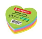 Блок самоклеящийся (стикеры), фигурный, BRAUBERG, НЕОНОВЫЙ «Сердце», 250 листов, 5 цветов, 126690